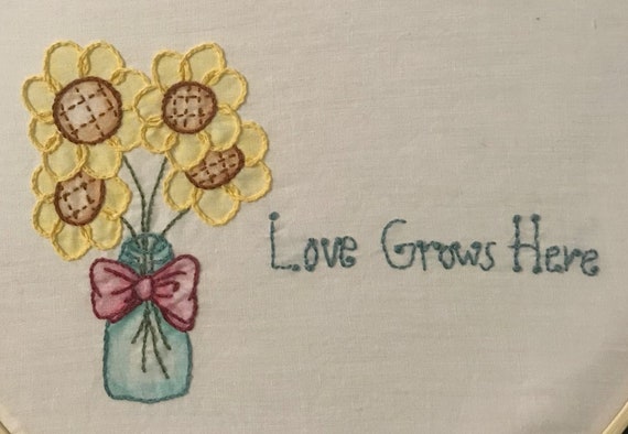 Hand Embroidery Design Pattern Pdf Hoop Sunflower Mason Jar Flowers Instant Download Hand Embroidery Pattern Printable